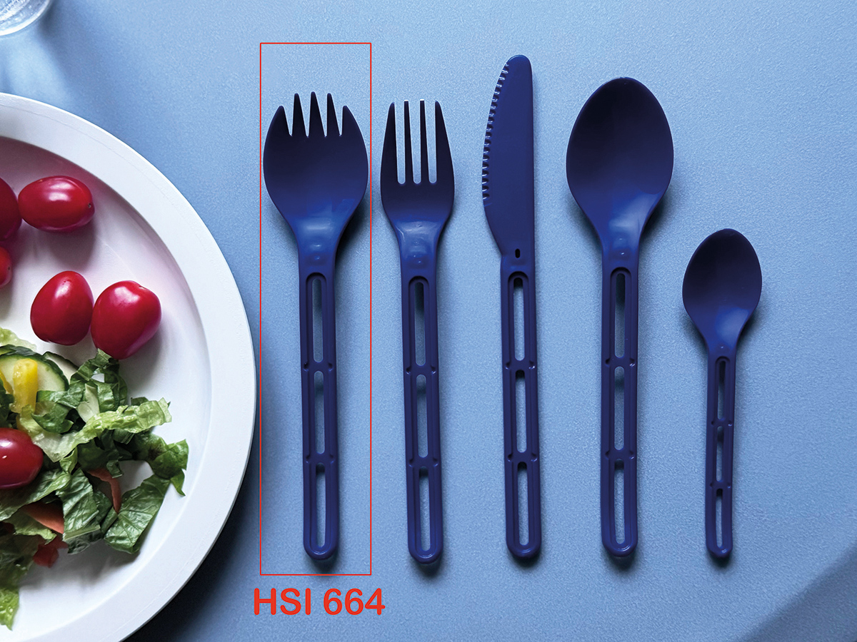 HSI664 : cuillère-fourchette. Couleur bleue.