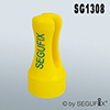 Le verrouillage ne fait sur une simple pression du bouton introduit sur l’axe en métal. Pour déverrouiller la fermeture de sécurité fermée (référence SG1306), il suffit d'emboiter la clé magnétique jaune (référence SG1308) sur le bouton vert, puis de tourner pour l’ouvrir.